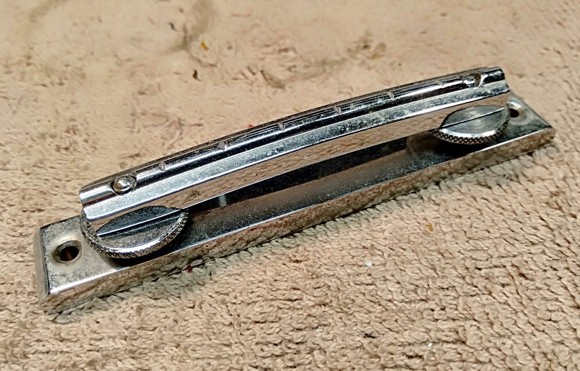 Vintage non intonatable flat top electric bridge. 51mm string spacing. Heavy chrome steel.