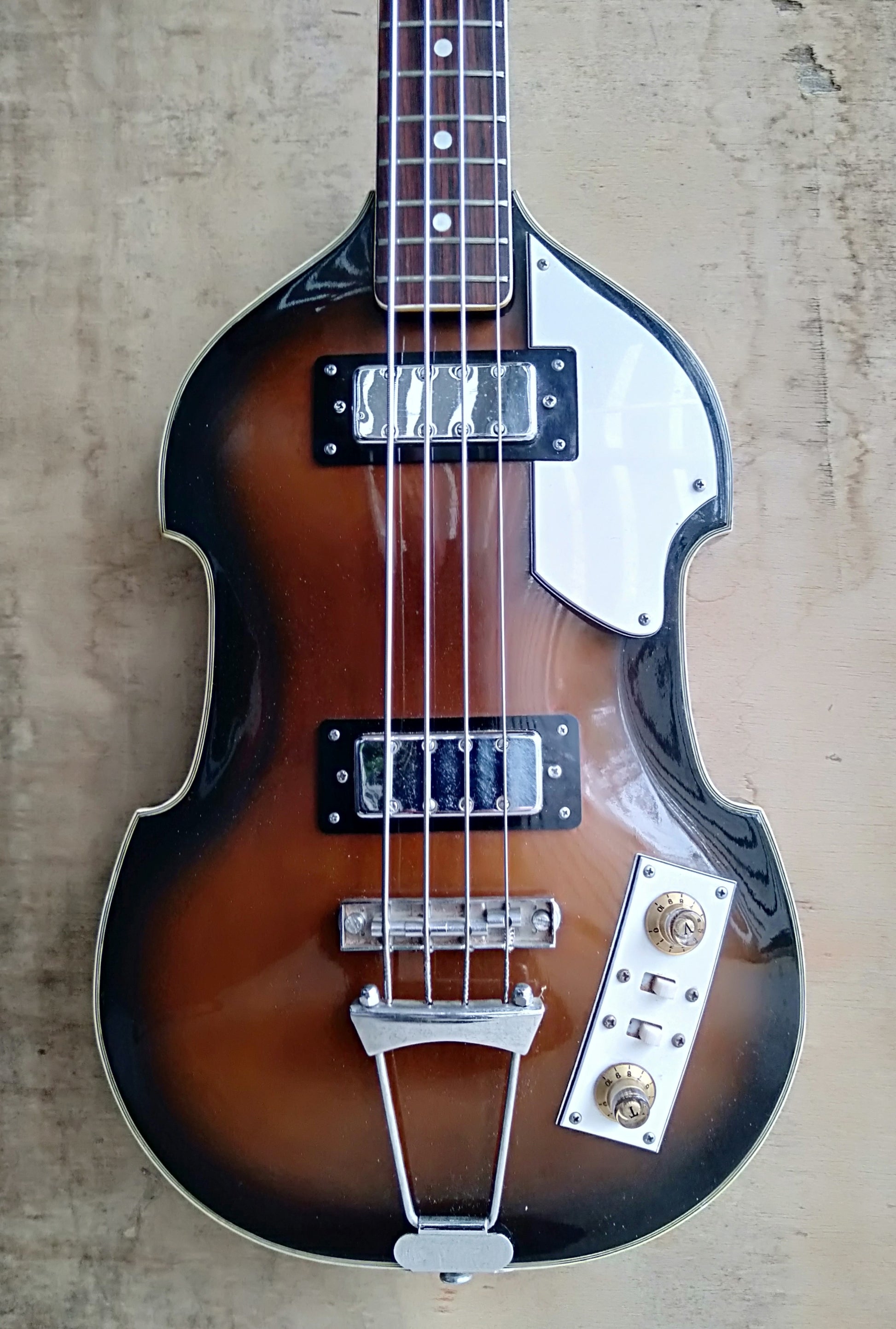 MIJ. Good condition with some player wear. Double bound thinline hollow body with bolt on maple neck. Bound and dot rosewood fretboard. Short scale 30" neck. All original electrics. Original bridge, tuners and tailpiece. Master volume and tone control on plate. Set up with flat wounds. No breaks or repairs. No case.